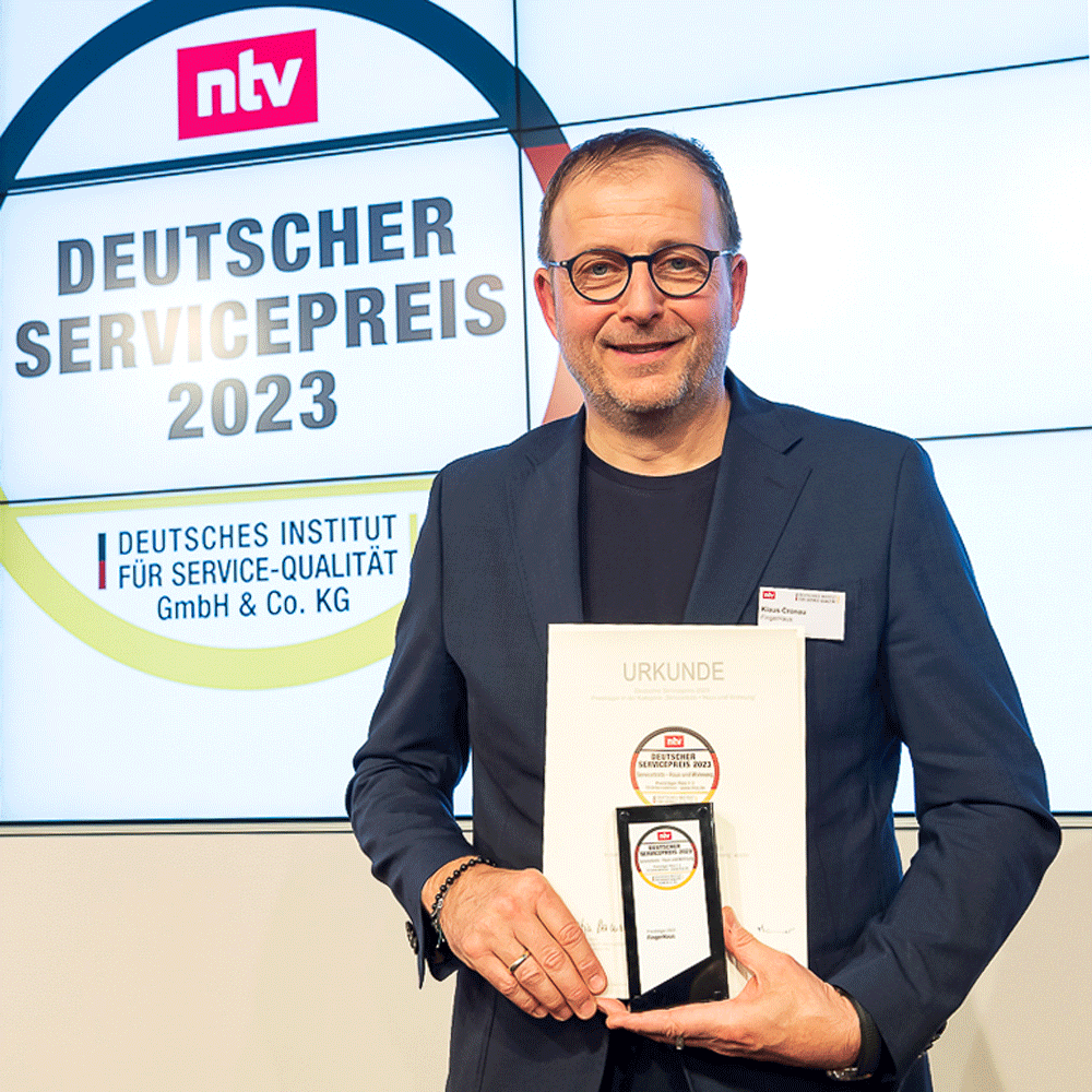 FingerHaus-Geschäftsführer Klaus Cronau nahm den Preis im Rahmen einer Gala in Berlin entgegen.