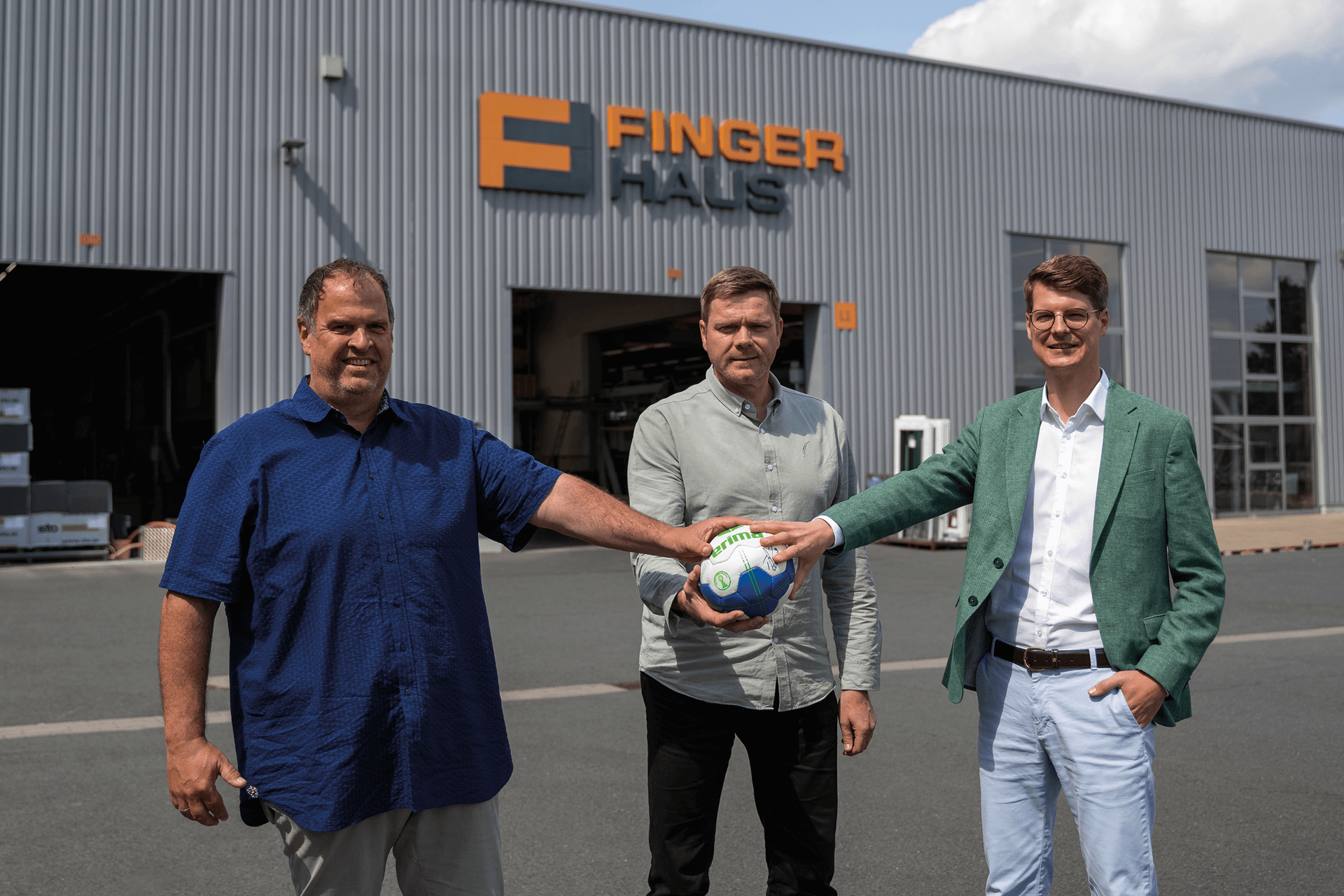 Seit 2018 besteht die Partnerschaft zweier starker Marken in Nordhessen und sie wird fortgeführt: Zum einen das sportliche Aushängeschild der Region, Handball Bundesligist MT Melsungen zum anderen der Fertighaushersteller FingerHaus, eines der größten Unternehmen der Branche bundesweit. Das Frankenberger Unternehmen sicherte auch für die kommende Saison seine Unterstützung als Co-Sponsor des ambitionierten Clubs zu. Sehr zur Freude von Axel Geerken, der sich bei seinem Besuch bei FingerHaus in Frankenberg vor allem dafür bedankte, dass das Unternehmen auch in der zweiten „Corona-Saison“ in Folge, in der die Heimspiele zwischenzeitlich nur mit reduzierten Zuschauerzahlen erlaubt waren, sein Engagement uneingeschränkt fortgeführt hat und weiter tun wird. „Das freut uns natürlich sehr”, so der MT-Vorstand, „nicht zuletzt auch deshalb, weil dies ein tolles Signal aus der Region und für die Region ist. FingerHaus und die MT repräsentieren damit weiterhin gemeinsam Nordhessen vor Ort und über dessen Grenzen hinaus”.