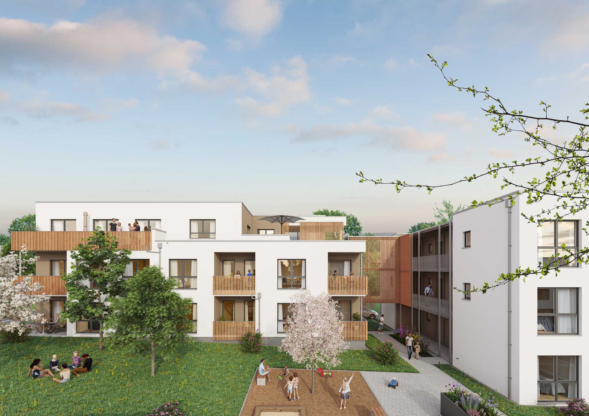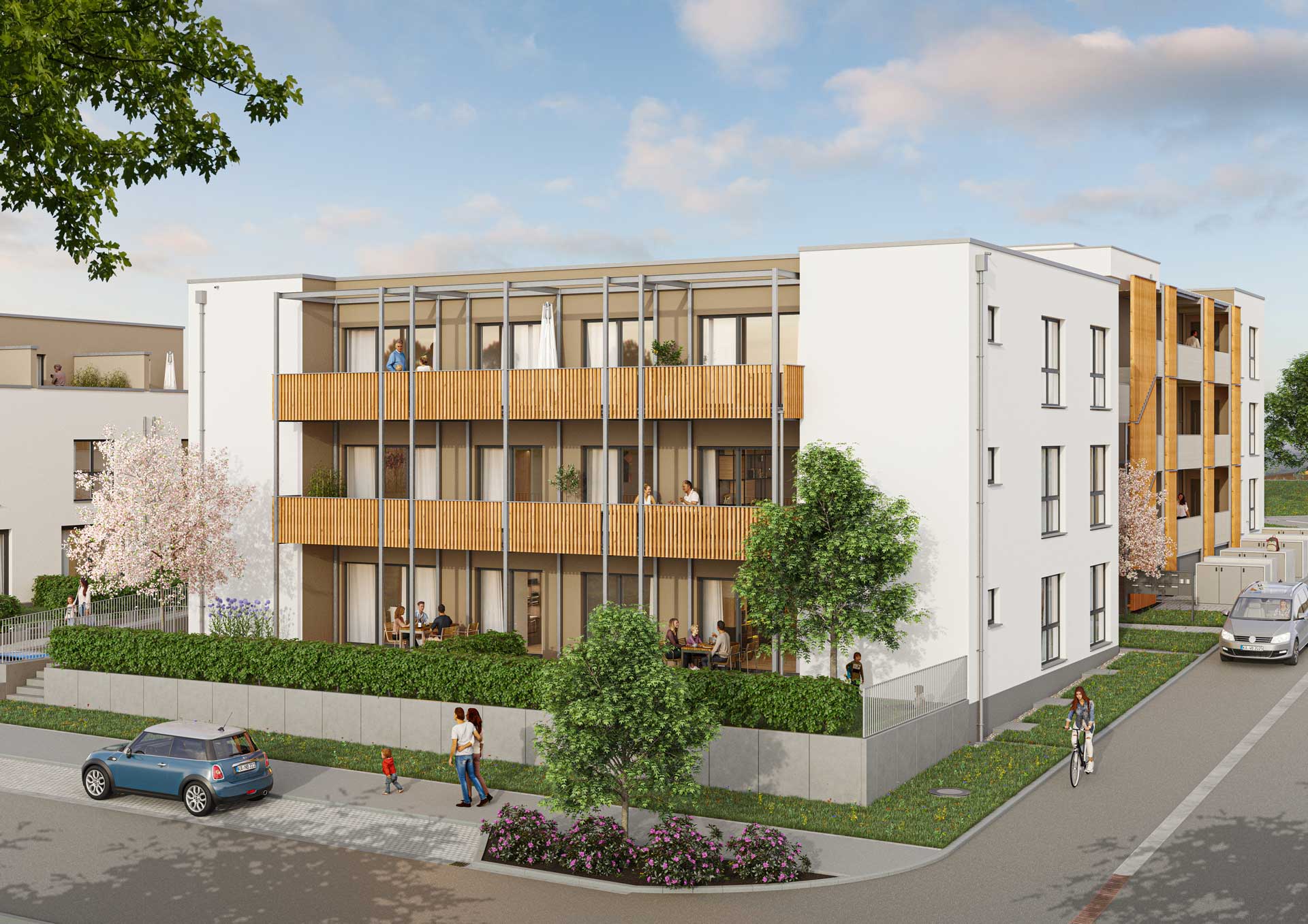 Jedes Reihenhaus bietet dabei auf drei Ebenen, mit 5 Zimmern und 135 m² sowie großzügigen Garten- und Dachterrassen, den kompletten Wohnkomfort für eine vierköpfige Familie. In den zwei Mehrfamilienhäusern entstehen 16 Wohnungen mit Balkonen oder Terrassen, die Wohnflächen von 40-95 m² bieten. Das bedeutet, je nach Wohnungsgröße, Wohnraum für Singles, Paare oder Familien in einem modernen und energieeffizienten Gebäude.