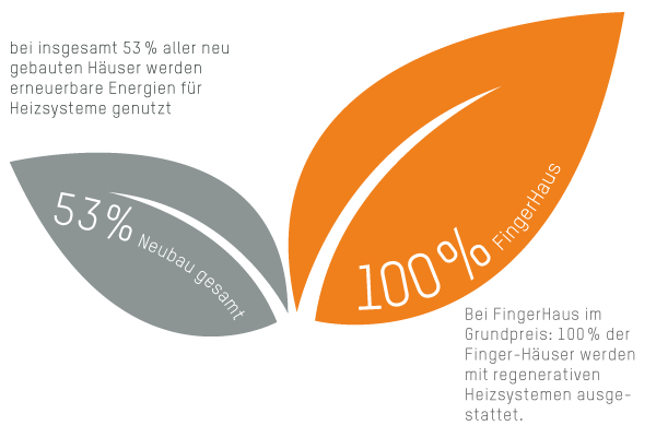 Bei FingerHaus setzen wir konsequent auf regenerative Heiztechnik, die bereits im Grundpreis enthalten ist. Schon vor der Energieeinsparverordnung 2016 haben wir 85 % unserer Finger-Häuser mit umweltfreundlicher Heiztechnik ausgestattet. Wir gestalten eine nachhaltige Zukunft und setzen ein klares Zeichen für den Klimaschutz.