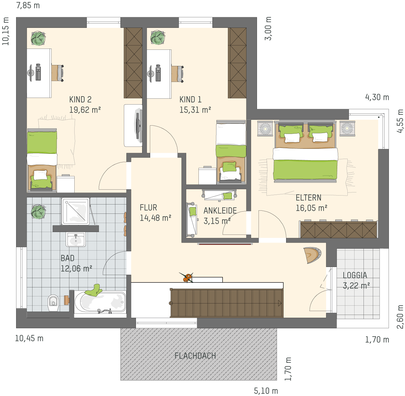- Wohnfläche von 162 m² bis 174 m²