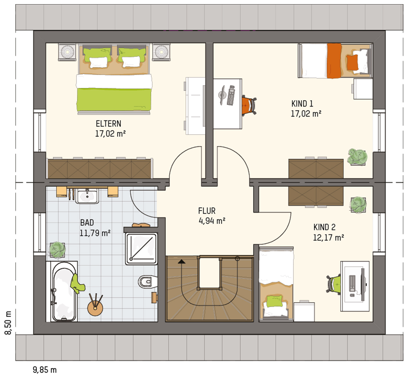 Außerdem haben Sie die Wahl zwischen drei attraktiven Sonderbauteilen: einem Erker, einem Wintergarten oder einem Quergiebel im Dachgeschoss. Alle Sonderbauteile sind bei beiden Kniestockhöhen und Grundrissgrößen möglich. Selbst bei der Anordnung der Bereiche Wohnen/Essen und der Küche haben Sie die Wahl zwischen einer geradlinigen oder einer abgewinkelten Variante. Mit UNO 2.0 erleben Sie Vielfalt und Ideen mit System.