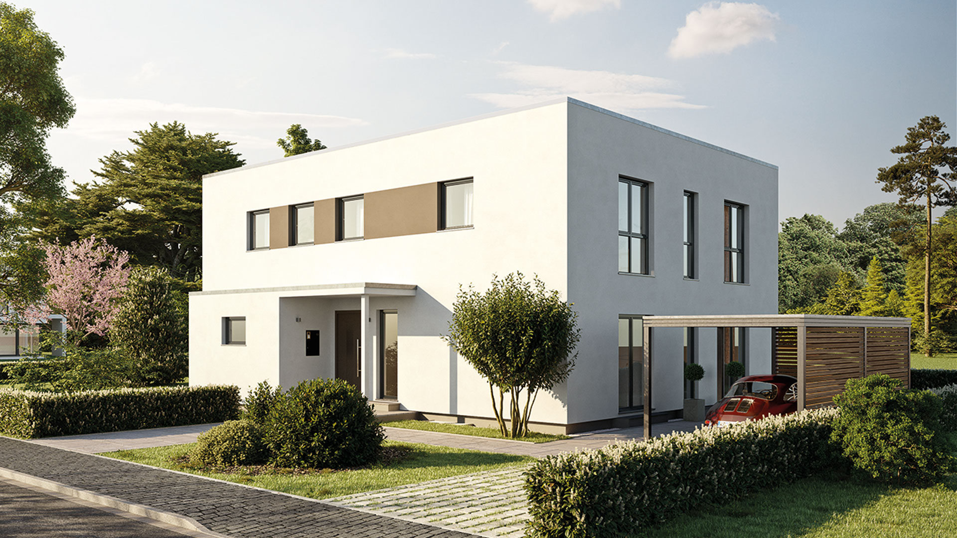 Besonders in diesem Neubaugebiet kann das TALO seine Stärken unter Beweis stellen: Der schmale Grundriss und die flexible Erweiterungsmöglichkeit durch den Erker machen das Hauskonzept zur optimalen Antwort auf die unterschiedlichen Bebauungspläne.