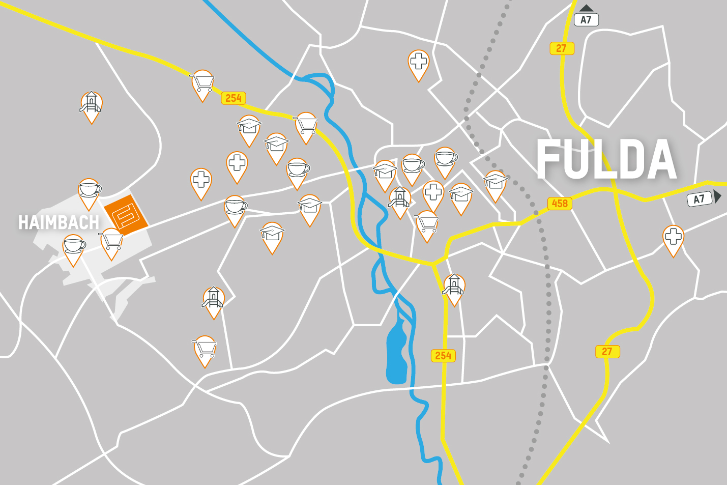 Im Stadtteil Haimbach, am westlichen Stadtrand Fuldas, entsteht ein Neubaugebiet in traumhafter Lage mit kurzen Wegen ins Stadtzentrum und guter Infrastruktur.