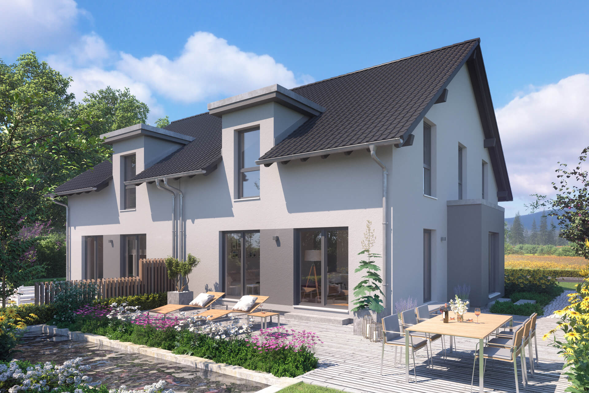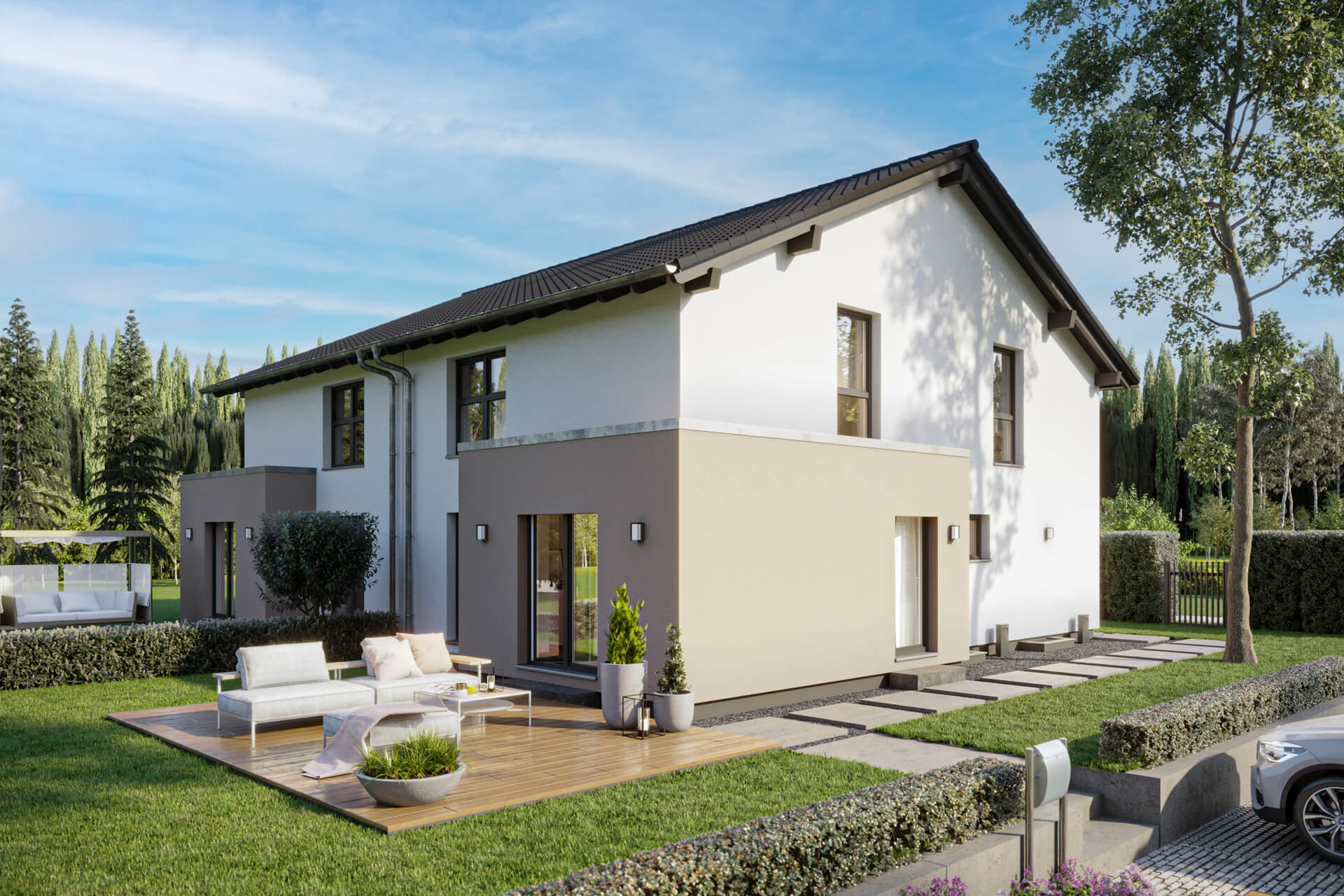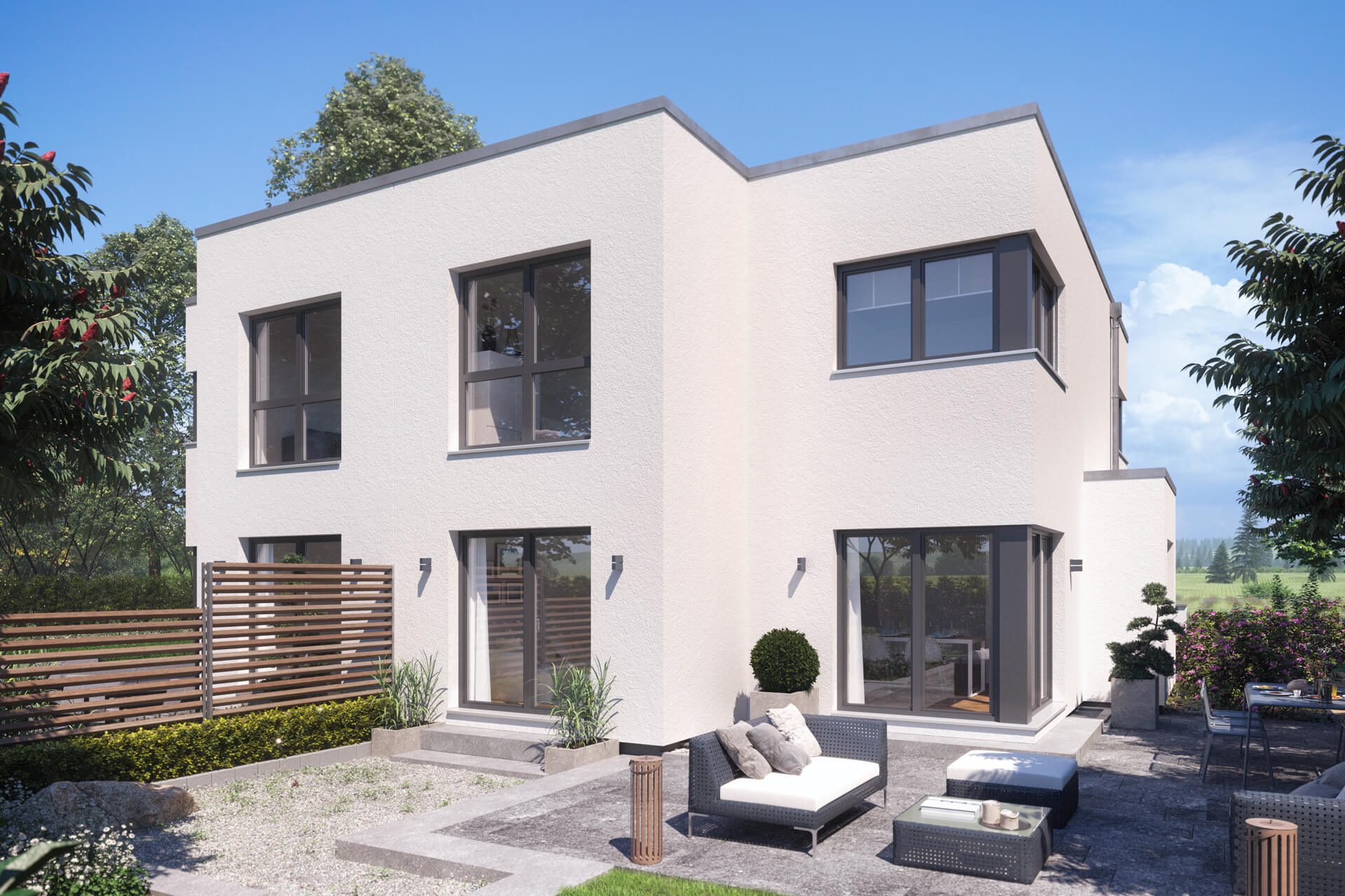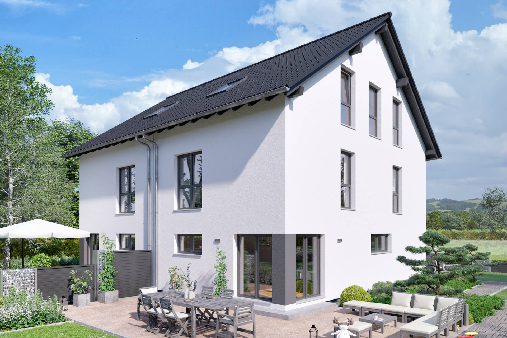 - zwei gleichwertige Doppelhaushälften