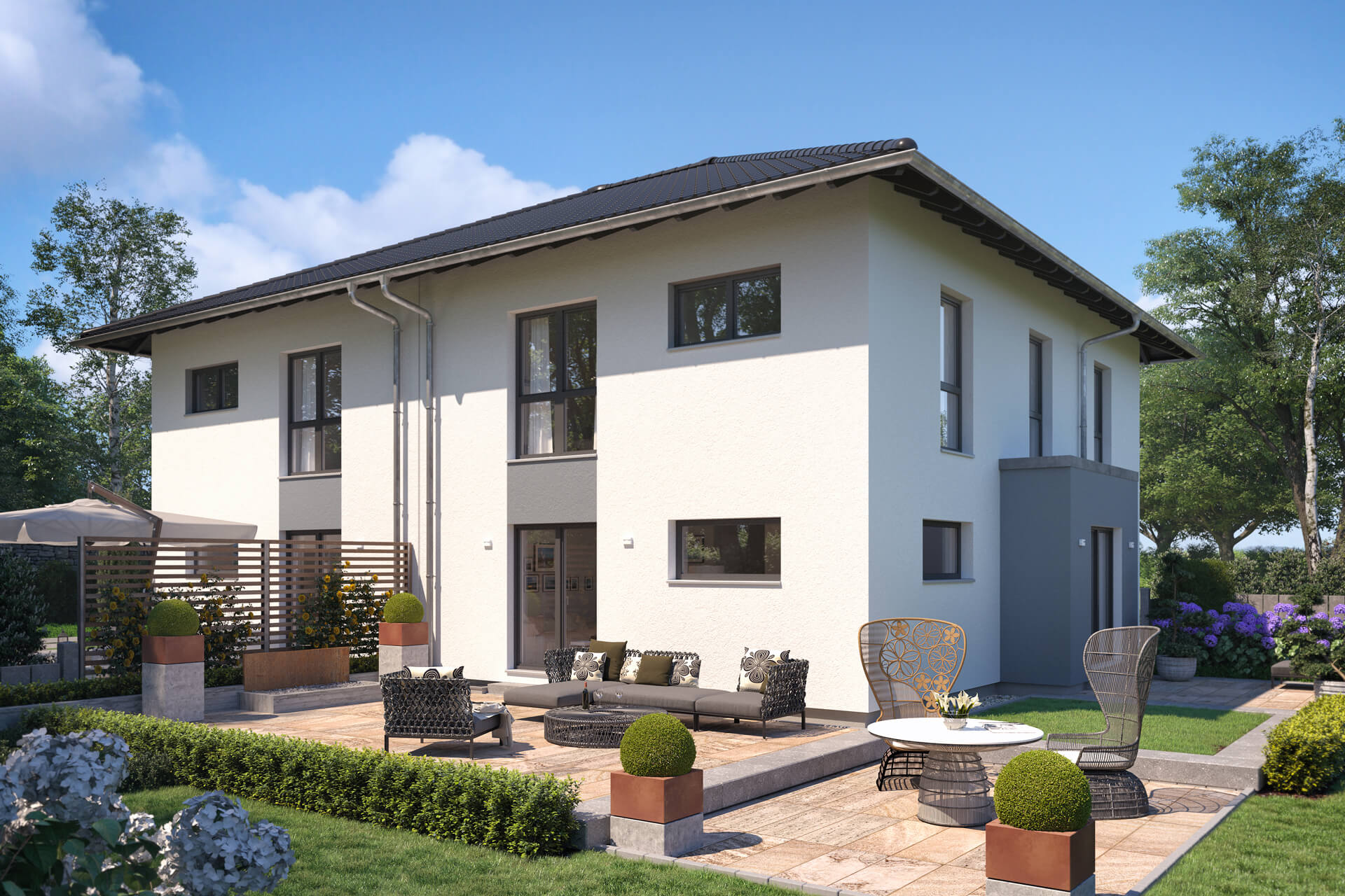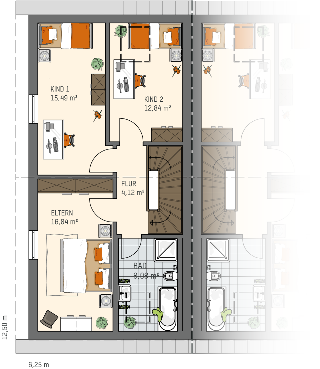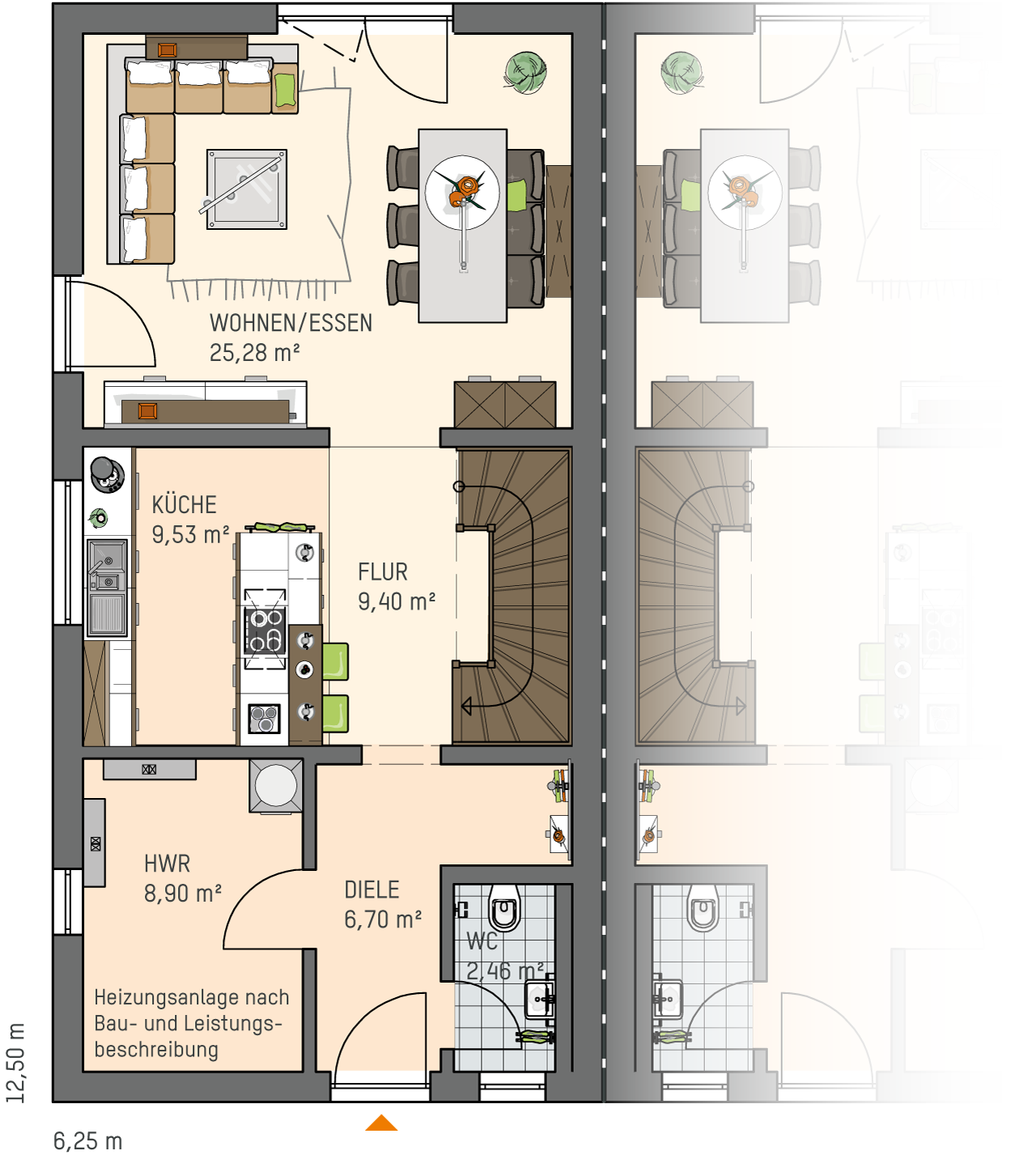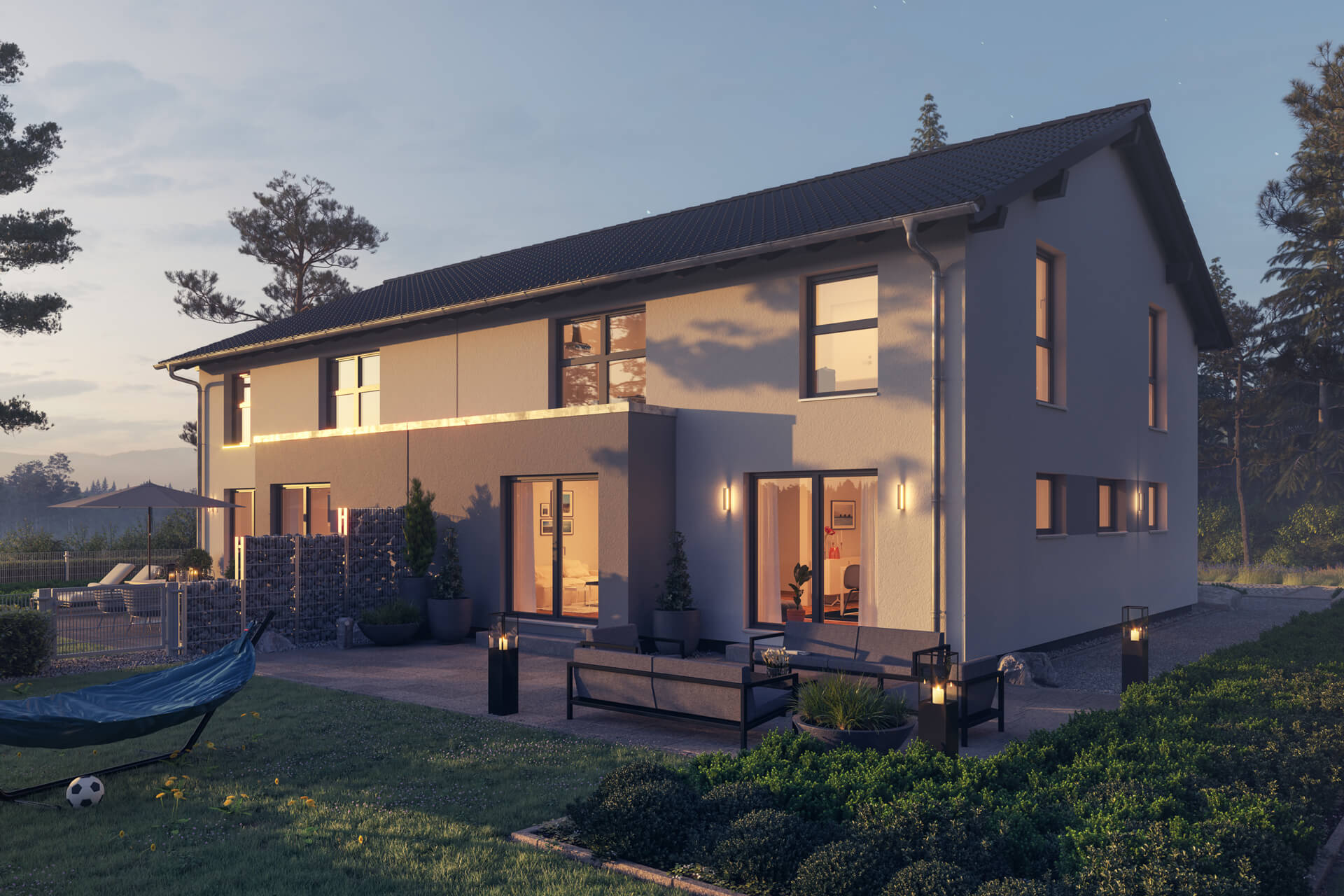 - zwei gleichwertige Doppelhaushälften