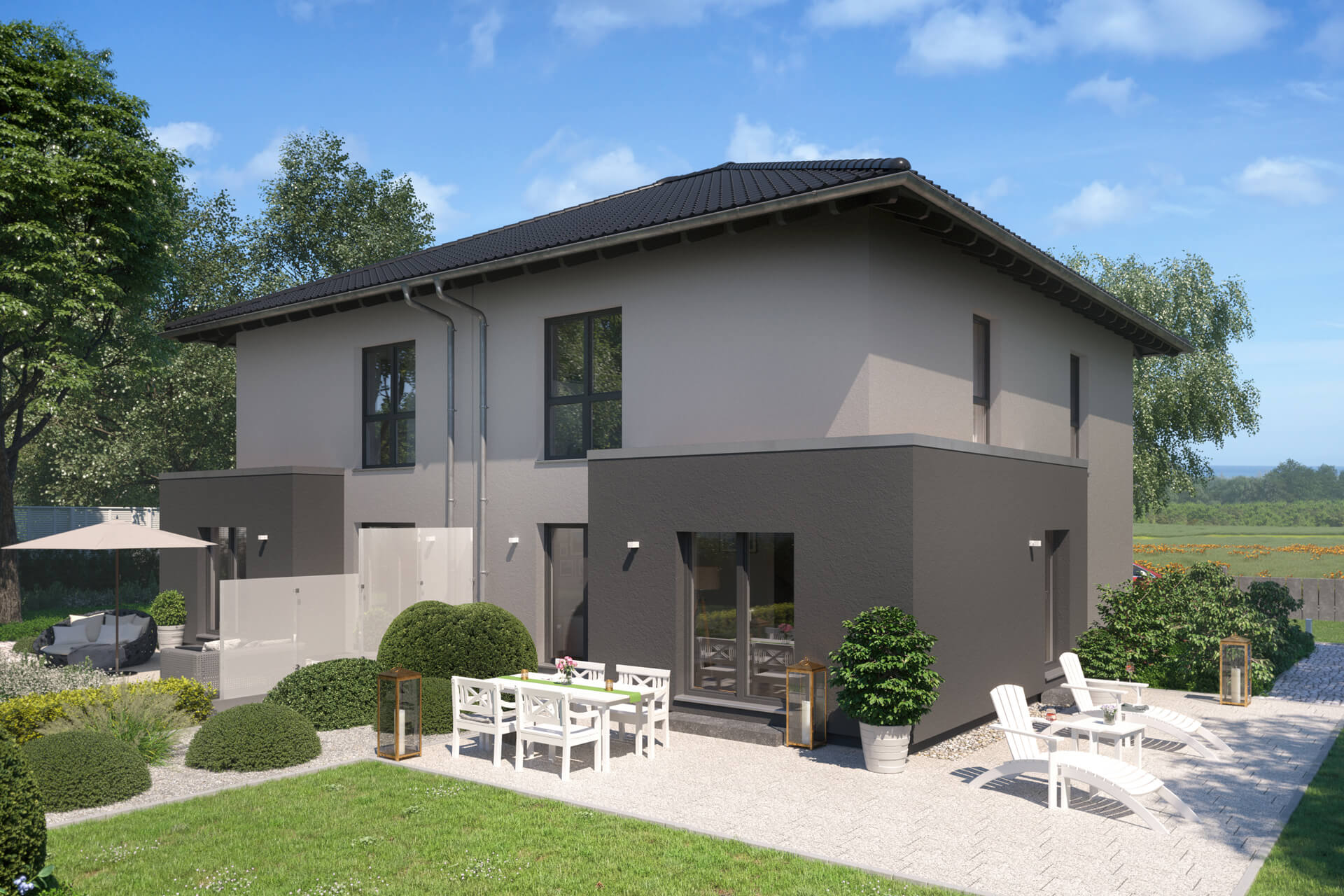Das Doppelhaus DUO von FingerHaus ermöglicht es, nah und doch getrennt mit Freunden oder Verwandten zu wohnen, und bietet verschiedene attraktive Entwürfe mit individuellen Planungsvarianten für ein vielfältiges Wohn- und Wohlfühlerlebnis.